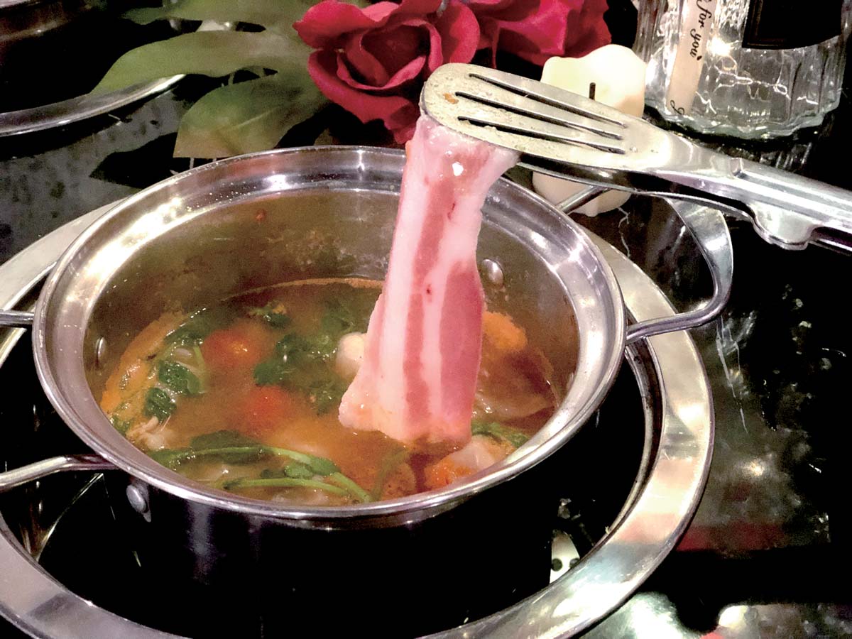 スープの種類は排骨茶、ジンジャー、トマトなど常時11種類が用意され、フレーバーを選び1人ひとりが自分専用の鍋で調理する衛生的で時代に即したスタイルも特徴です。