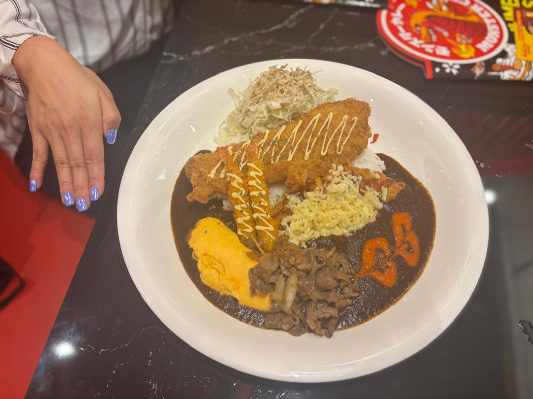 Super Monster Comboには、チキンカツやフィッシュフライ、エビフライ、ビーフ、オムレツ、チーズなど、さまざまなトッピングが一度に楽しめるのが特徴。ひと皿で多彩な味を少しずつ味わえるため、「どれを注文するか迷う」という人にもおすすめです。実際に食べ進める中でも、トッピングごとに味や食感が変わり、最後まで飽きずに楽しめました。
